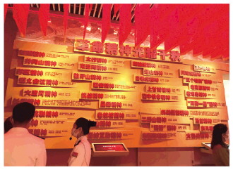 在人民軍隊(duì)?wèi)c祝中國(guó)共產(chǎn)黨成立100周年主題展覽展廳,有一面紅墻格外引人注意,吸引了不少參觀者駐足觀看。