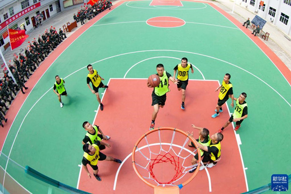 10月2日,武警廣西總隊新兵團組織新兵進行籃球比賽。新華社發(fā)(余海洋 攝)