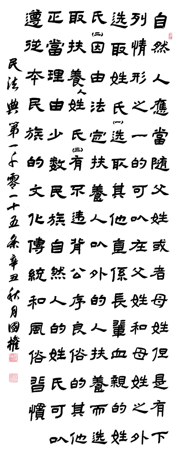 民法典第一千零一十五條 自然人應當隨父姓或者母姓,但是有下列情形之一的,可以在父姓和母姓之外選取姓氏: