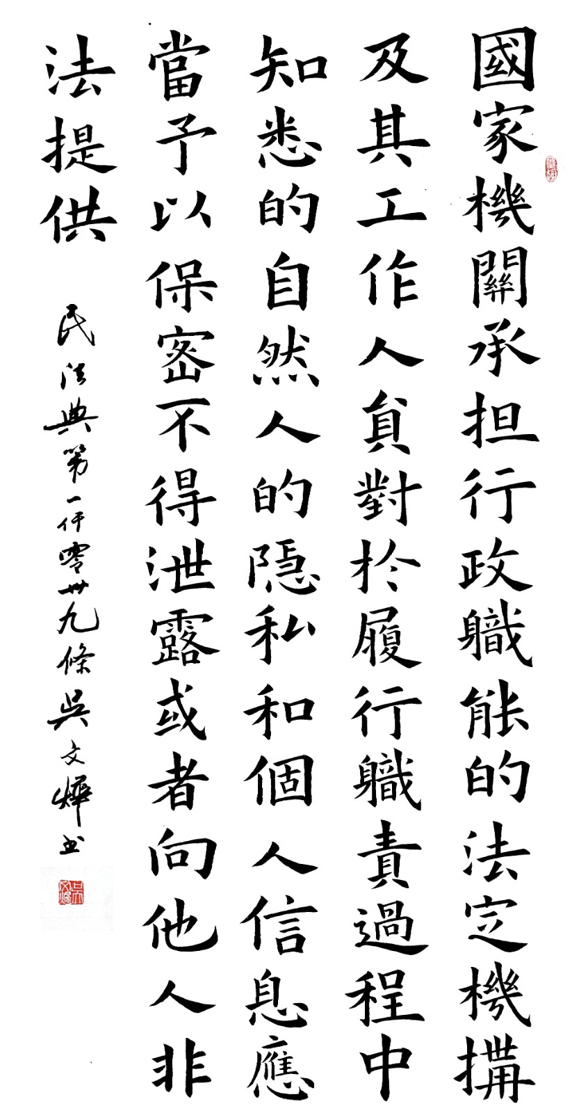 民法典第一千零三十九條 國家機關、承擔行政職能的法定機構(gòu)及其工作人員對于履行職責過程中知悉的自然人的隱私和個人信息,應當予以保密,不得泄露或者向他人非法提供。