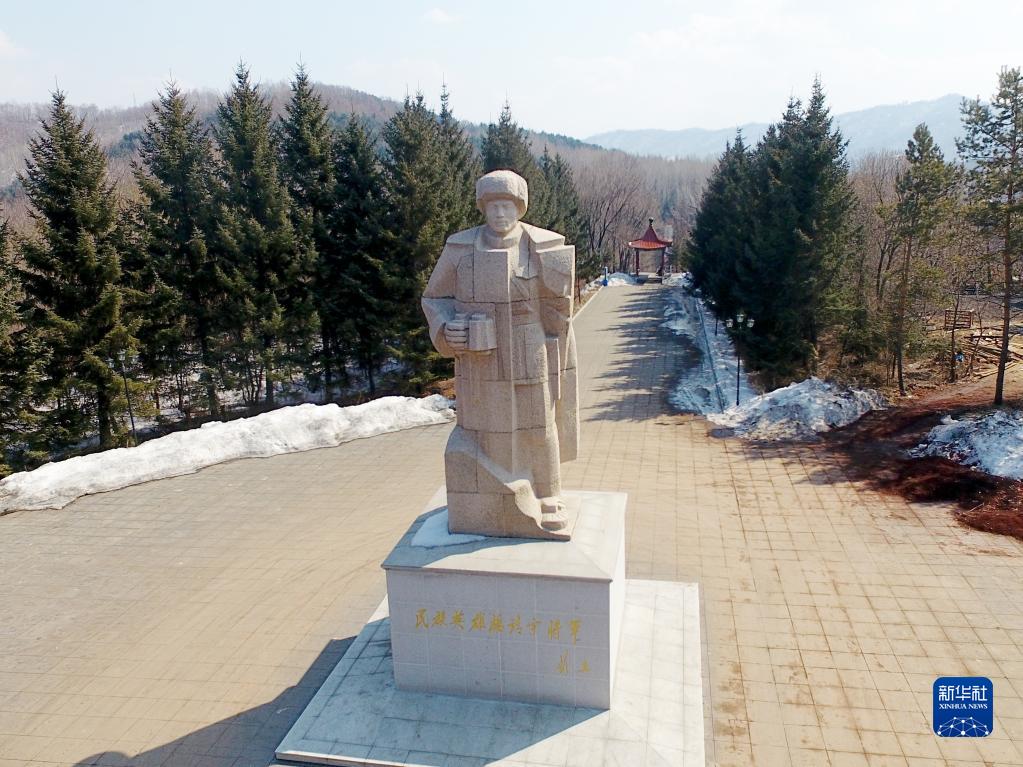 矗立在吉林省靖宇縣楊靖宇將軍殉國地的楊靖宇雕像(2017年3月22日攝)。新華社記者 曾濤 攝