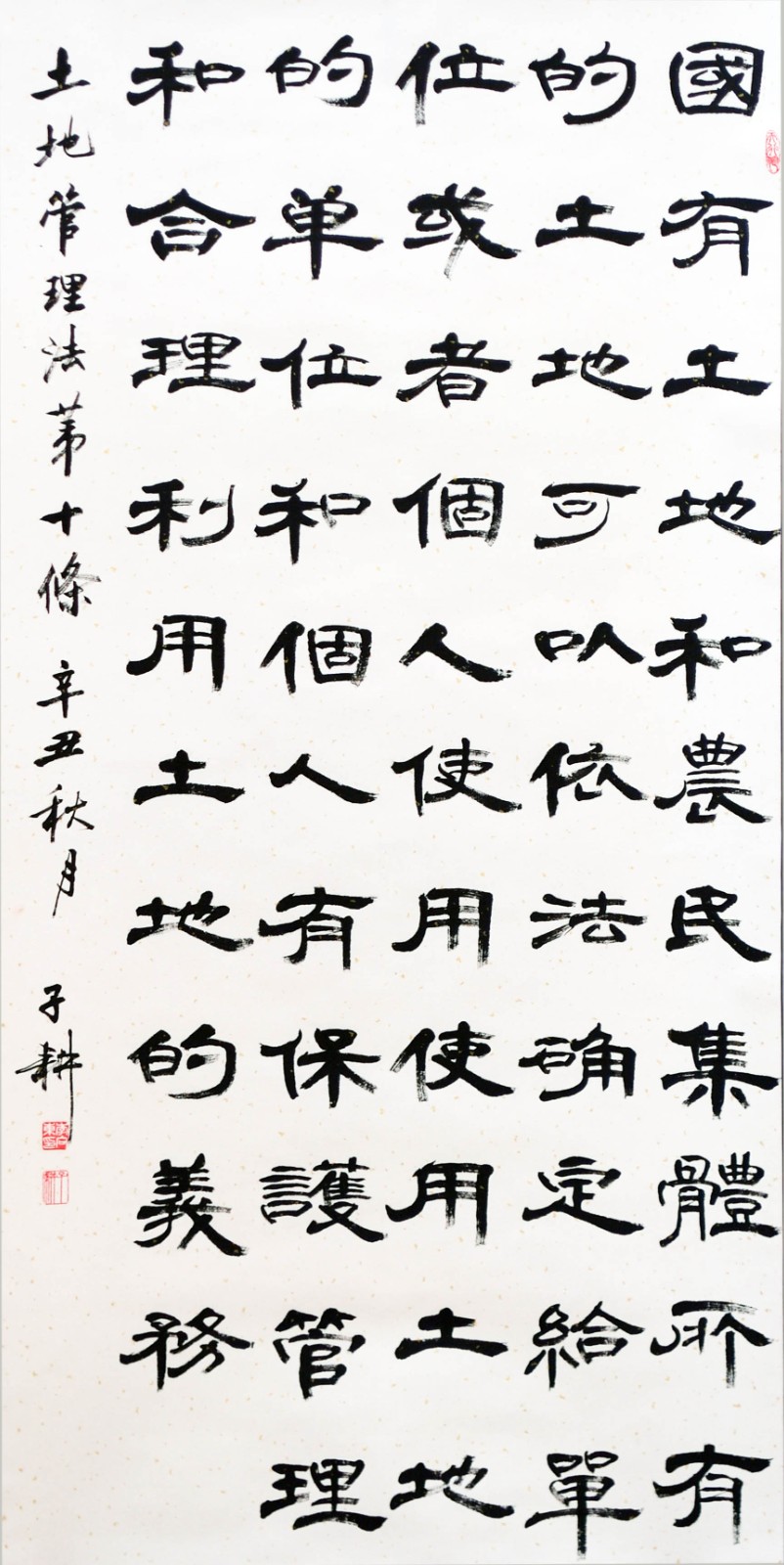 繼1600余位書法家參與書寫《中華人民共和國民法典》全部1260條法條之后,法治日報社聯(lián)合自然資源部法規(guī)司、自然資源部書畫研究會和北京昌平書法家協(xié)會,將筆端對準(zhǔn)土地管理“一法一條例”,即《中華人民共和國土地管理法》和《中華人民共和國土地管理法實(shí)施條例》。