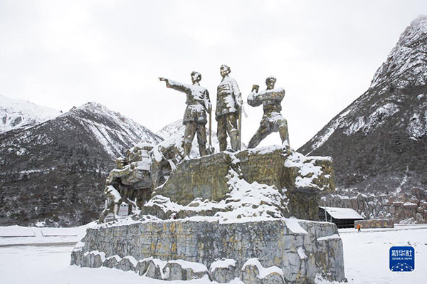 這是雀兒山下張福林烈士陵園前豎立著的“十八軍將士精神永存”雕塑(2019年11月1日攝)。新華社記者 江宏景 攝