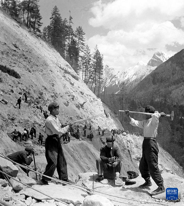 這是1954年筑路大軍修筑康藏公路(1955年改名為川藏公路)的資料照片。新華社發(fā)