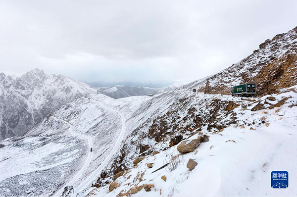 其美多吉與同事駕車行駛在雪線郵路上(資料照片)。其美多吉是中國(guó)郵政甘孜縣分公司郵運(yùn)駕駛組的一名郵車司機(jī),往返在甘孜縣與德格縣之間。這段路程是四川省甘孜州綿延5866公里、平均海拔超過3500米的雪線郵路最危險(xiǎn)的一段。新華社發(fā)(周兵 攝)