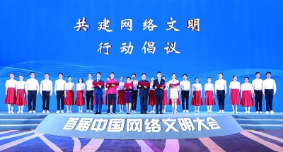 在首屆中國網(wǎng)絡(luò)文明大會(huì)上,共建網(wǎng)絡(luò)文明行動(dòng)倡議發(fā)布。資料圖片