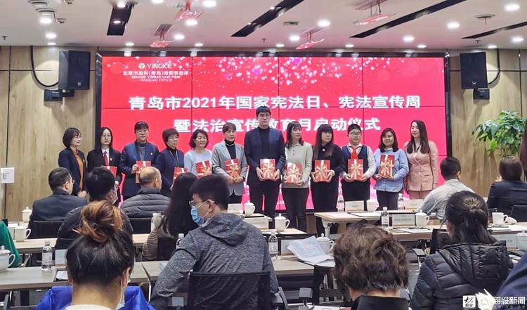 儀式在“我是憲法朗讀者”宣傳片的朗朗誦讀聲中開始,劉春穎同志與有關(guān)領(lǐng)導(dǎo)為學(xué)法講法優(yōu)秀代表贈(zèng)送憲法書籍,并宣布“青島市2021年國(guó)家憲法日、憲法宣傳周暨法治宣傳教育月主題宣傳活動(dòng)正式啟動(dòng)”。