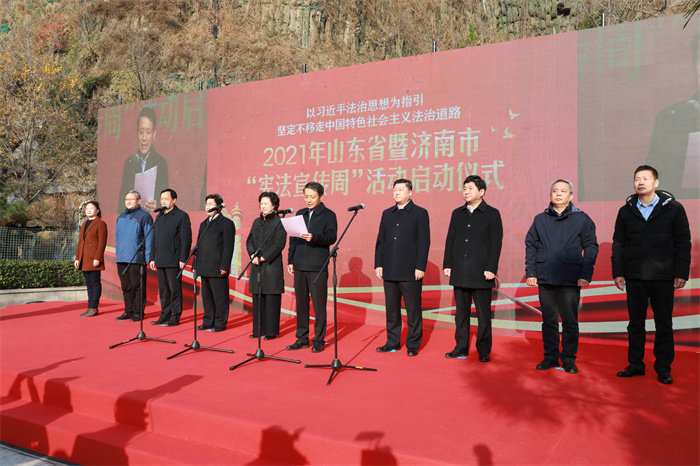 11月29日,2021年山東省暨濟南市“憲法宣傳周”活動啟動儀式在歷下區(qū)洪山憲法主題公園舉行。活動現(xiàn)場,來自歷下區(qū)的64名行政執(zhí)法人員進行了集體宣誓。