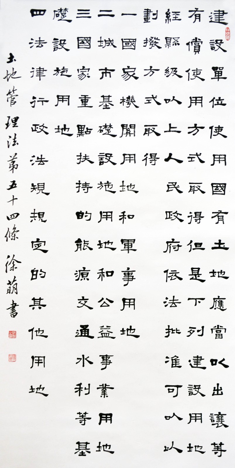 繼1600余位書(shū)法家參與書(shū)寫(xiě)《中華人民共和國(guó)民法典》全部1260條法條之后,法治日?qǐng)?bào)社聯(lián)合自然資源部法規(guī)司、自然資源部書(shū)畫(huà)研究會(huì)和北京昌平書(shū)法家協(xié)會(huì),將筆端對(duì)準(zhǔn)土地管理“一法一條例”,即《中華人民共和國(guó)土地管理法》和《中華人民共和國(guó)土地管理法實(shí)施條例》。