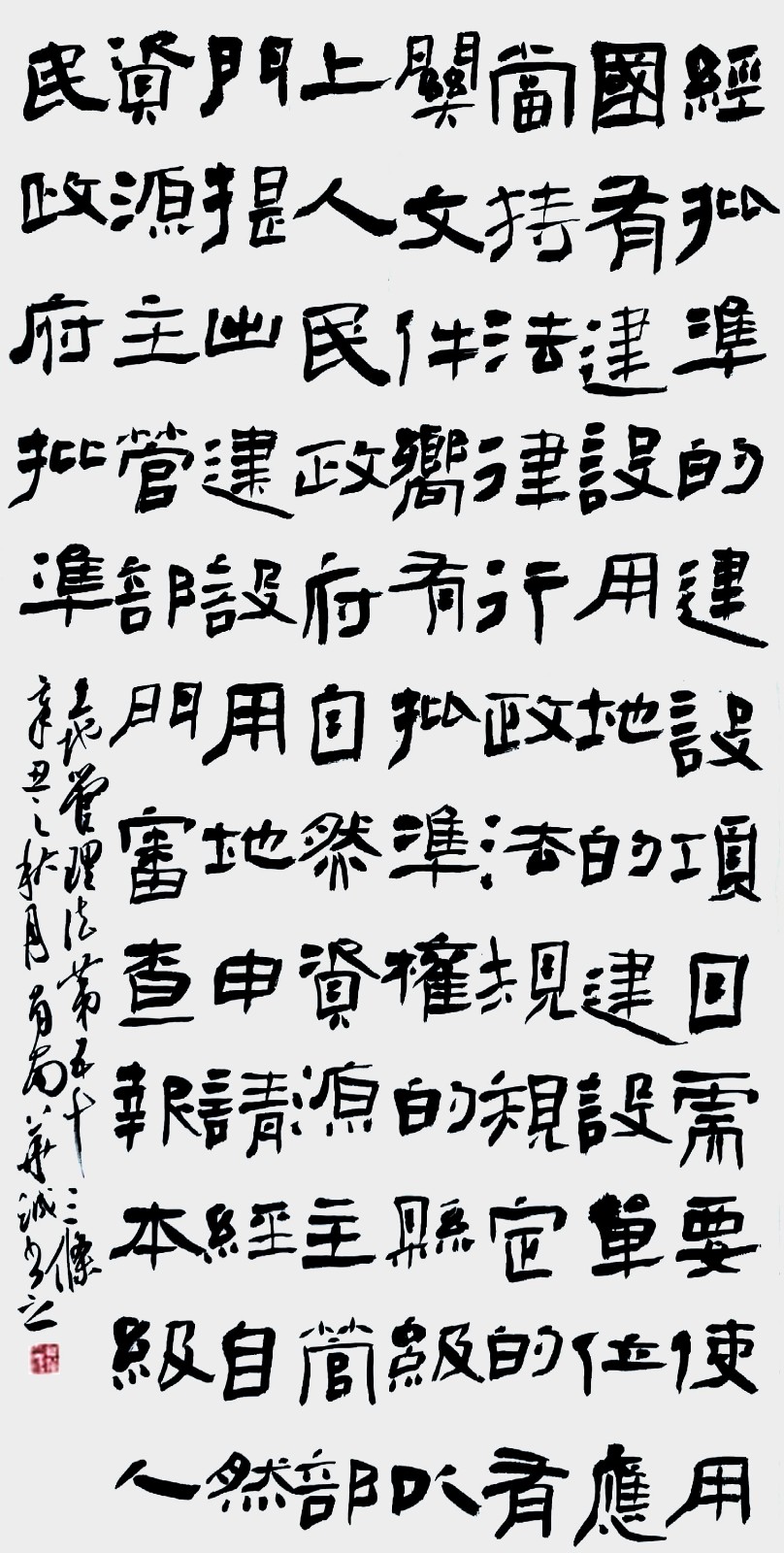 繼1600余位書(shū)法家參與書(shū)寫(xiě)《中華人民共和國(guó)民法典》全部1260條法條之后,法治日?qǐng)?bào)社聯(lián)合自然資源部法規(guī)司、自然資源部書(shū)畫(huà)研究會(huì)和北京昌平書(shū)法家協(xié)會(huì),將筆端對(duì)準(zhǔn)土地管理“一法一條例”,即《中華人民共和國(guó)土地管理法》和《中華人民共和國(guó)土地管理法實(shí)施條例》。