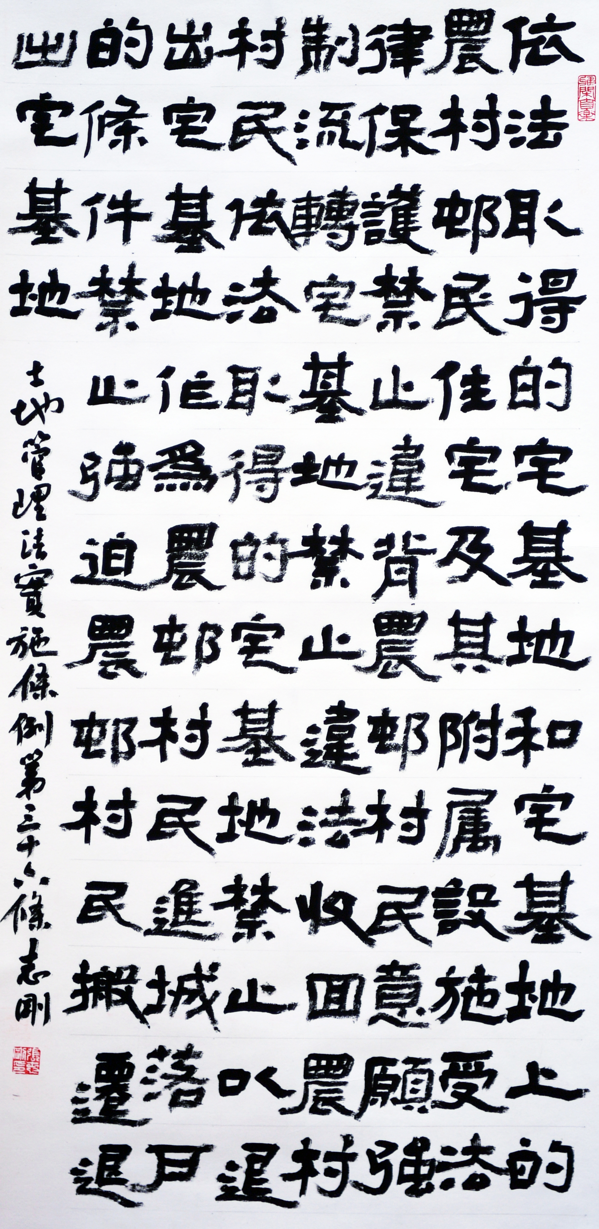 繼1600余位書法家參與書寫《中華人民共和國(guó)民法典》全部1260條法條之后,法治日?qǐng)?bào)社聯(lián)合自然資源部法規(guī)司、自然資源部書畫研究會(huì)和北京昌平書法家協(xié)會(huì),將筆端對(duì)準(zhǔn)土地管理“一法一條例”,即《中華人民共和國(guó)土地管理法》和《中華人民共和國(guó)土地管理法實(shí)施條例》。