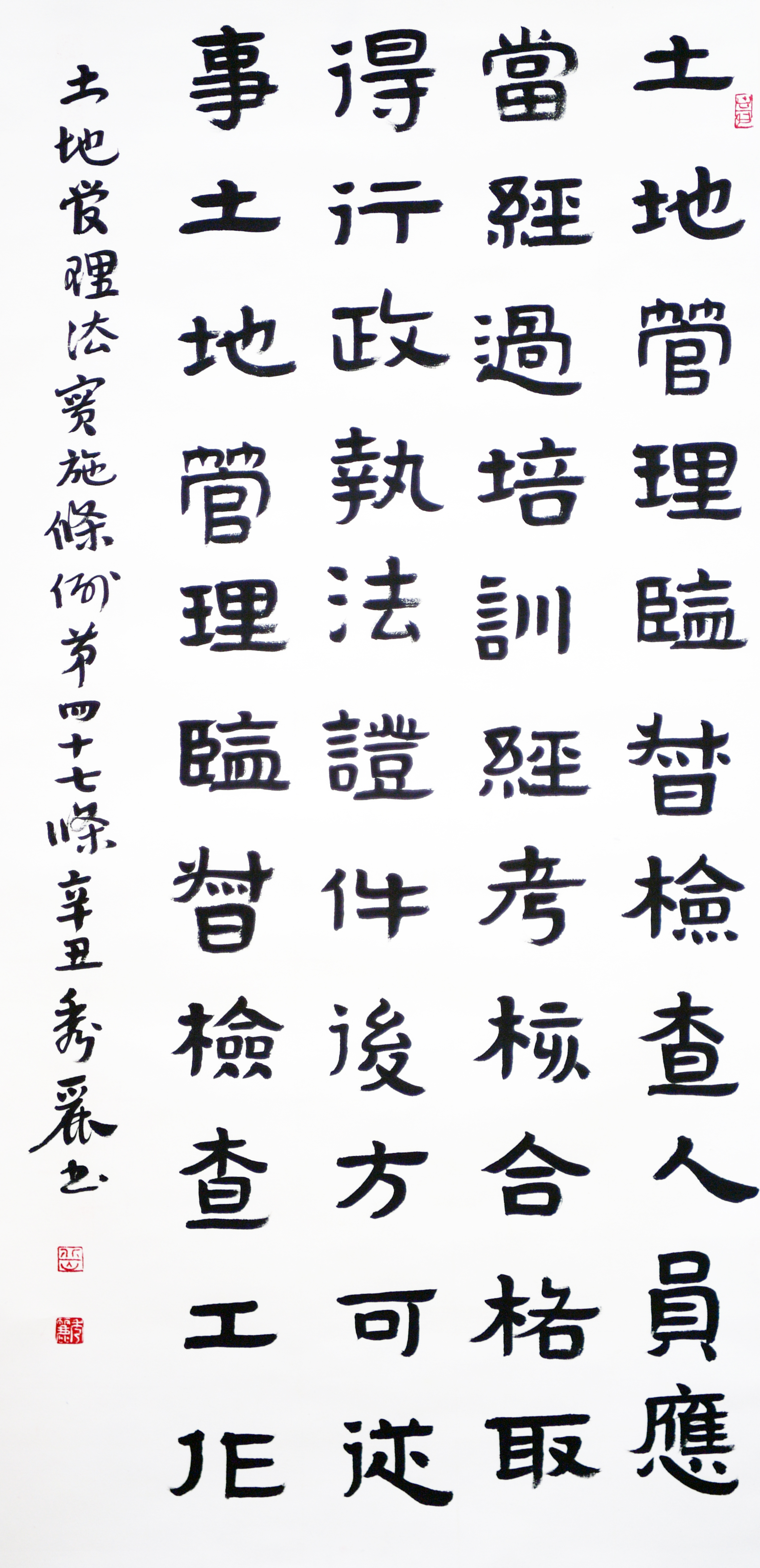 繼1600余位書法家參與書寫《中華人民共和國民法典》全部1260條法條之后,法治日報(bào)社聯(lián)合自然資源部法規(guī)司、自然資源部書畫研究會(huì)和北京昌平書法家協(xié)會(huì),將筆端對準(zhǔn)土地管理“一法一條例”,即《中華人民共和國土地管理法》和《中華人民共和國土地管理法實(shí)施條例》。