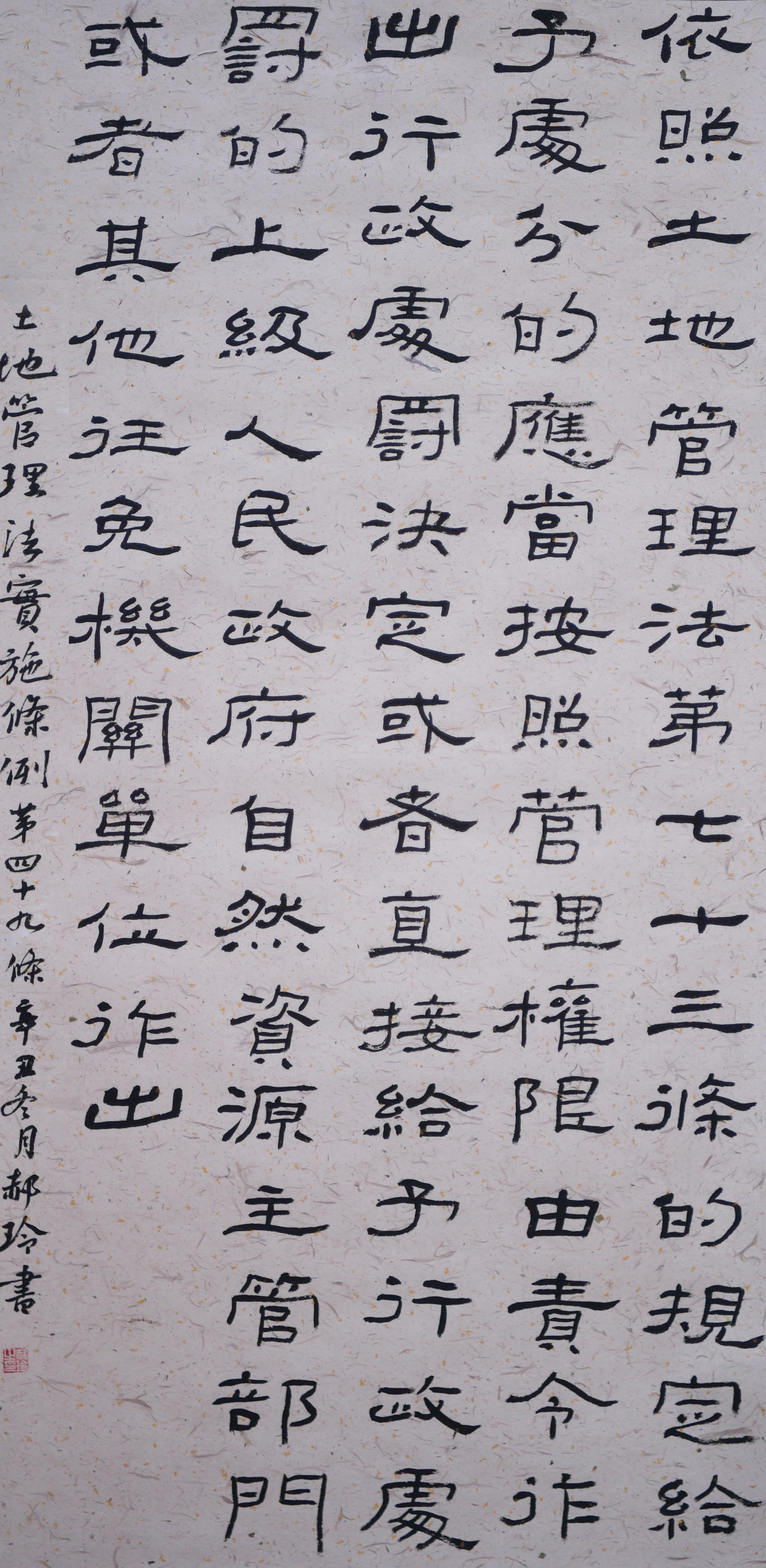 繼1600余位書法家參與書寫《中華人民共和國民法典》全部1260條法條之后,法治日報社聯合自然資源部法規(guī)司、自然資源部書畫研究會和北京昌平書法家協(xié)會,將筆端對準土地管理“一法一條例”,即《中華人民共和國土地管理法》和《中華人民共和國土地管理法實施條例》。