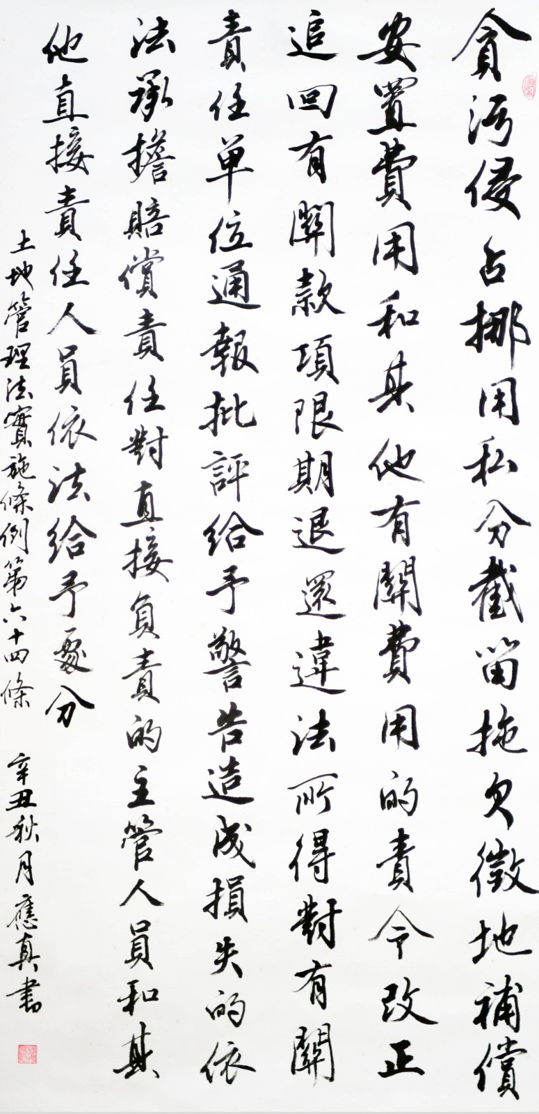 繼1600余位書法家參與書寫《中華人民共和國民法典》全部1260條法條之后,法治日報社聯合自然資源部法規(guī)司、自然資源部書畫研究會和北京昌平書法家協會,將筆端對準土地管理“一法一條例”,即《中華人民共和國土地管理法》和《中華人民共和國土地管理法實施條例》。