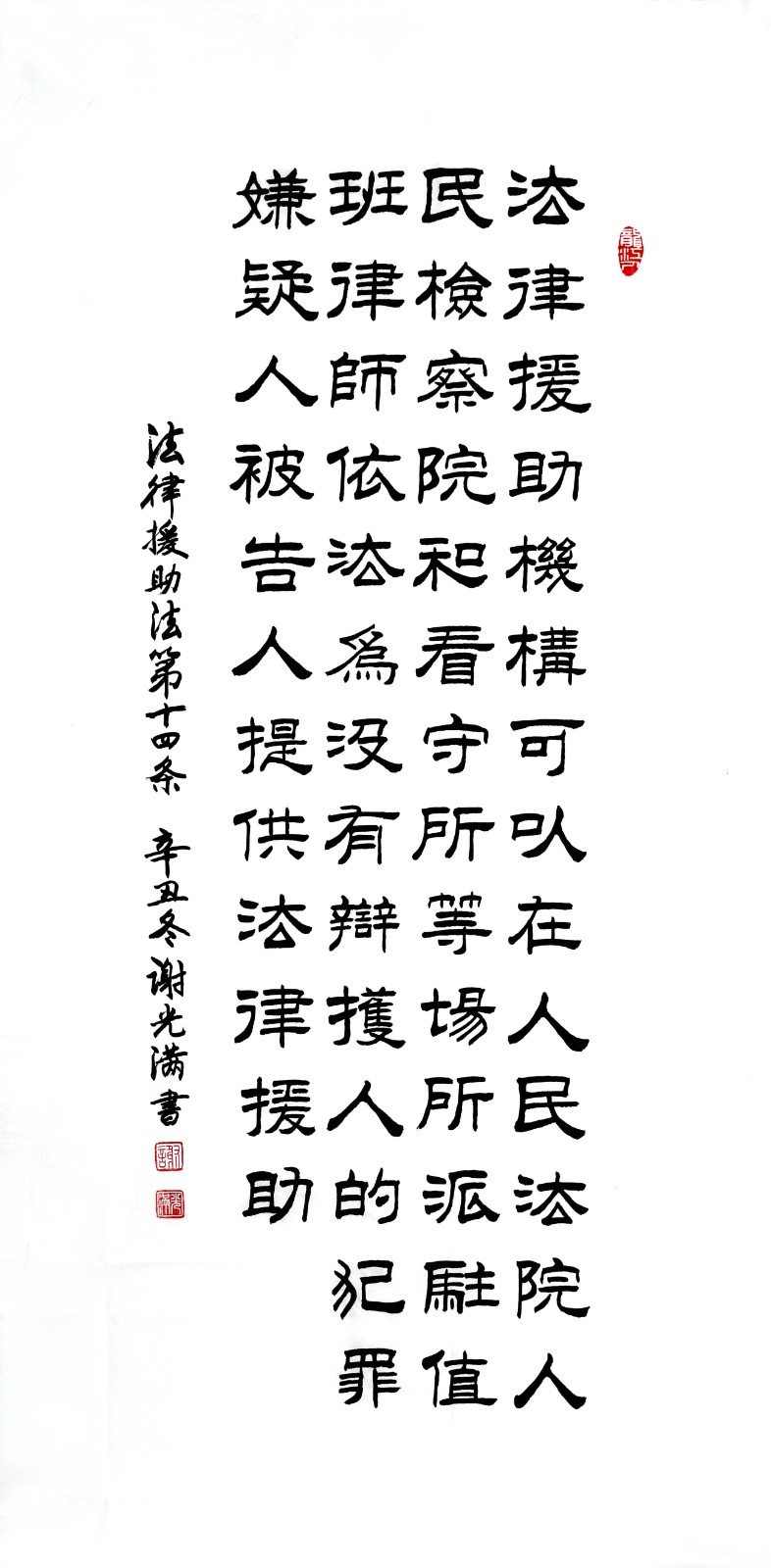 謝光滿,司法部詩書畫協(xié)會會員,北京市硬筆書法協(xié)會會員。