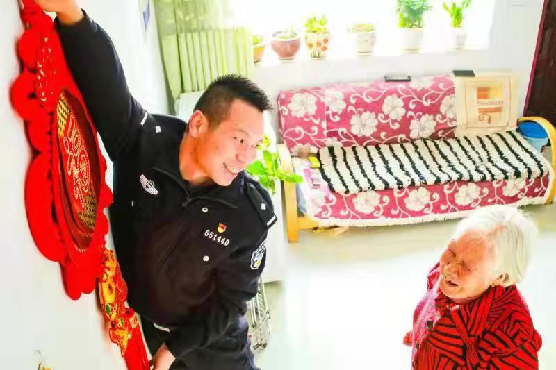 活動中,派出所民警李鵬翔、楊文龍到轄區(qū)孤寡、獨居和生活困難的群眾家中,親手書寫春聯(lián),幫助群眾掛上中國結(jié)和紅燈籠,并送去米、面、油、牛奶等慰問品表達節(jié)日的問候與祝福。期間,民警們特別登門拜訪了轄區(qū)75歲的抗美援朝老戰(zhàn)士李大娘家,為其送上春聯(lián),并聽李大娘講述抗美援朝故事,傳承擁軍愛民的光榮傳統(tǒng)。