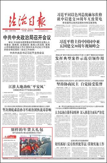 “俺要的這副春聯(lián)好,過年貼到家里大門上?!?4歲的村民王大姐指著“江山千古秀 祖國萬年春”的春聯(lián)對《法治日報》記者說。