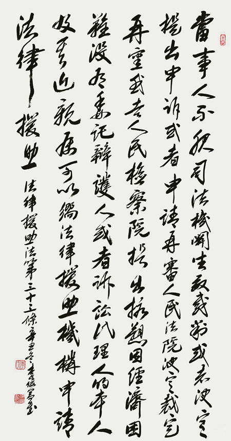 “書·法”活動旨在為創(chuàng)新法治宣傳教育,多開一點腦洞、多花一點心思、多出一點力量、多做一點貢獻,引領(lǐng)和推動更多的人拿起筆來學(xué)法、寫法,在不斷“書·法”過程中,提升自身的法治素養(yǎng),在全社會弘揚法治精神。