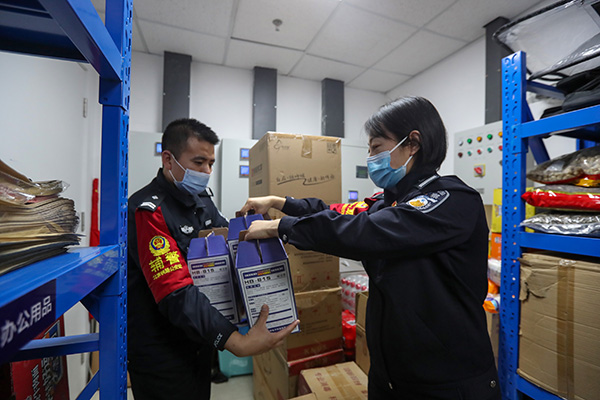 清瘦的肩膀上不僅挑著全所民警的“衣食住行”,也肩負(fù)著在京張沿線參加冬奧安保戰(zhàn)友們的后勤保障配送工作。為做好冬奧安保和疫情防控,京張沿線各高鐵車站派出所的生活用品和防疫物資都是從清河站配送。張靈每天最早上班、最晚下班。她要根據(jù)各個(gè)車站派出所的需求,在擺滿物資用品的倉庫中穿行,完成清點(diǎn)、分裝、打包、消毒、配送,確保第一時(shí)間將物資配送到京張沿線各個(gè)車站派出所。每天后半夜接到派出所的反饋電話是她最開心的時(shí)候。連續(xù)多日從早忙到晚,張靈熬紅了雙眼,但她覺得,自己的戰(zhàn)友們每天都要在寒風(fēng)雪地里堅(jiān)守,和他們相比,自己這點(diǎn)工作實(shí)在微不足道。