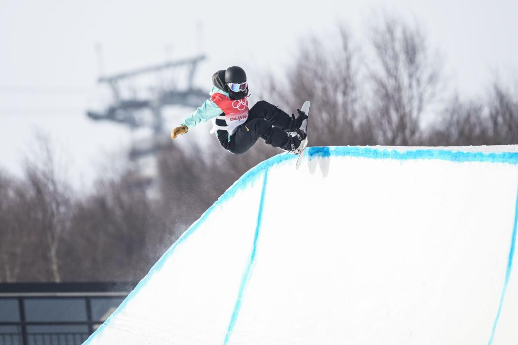 2月10日,北京2022年冬奧會單板滑雪女子U型場地技巧決賽在張家口云頂滑雪公園舉行,中國選手蔡雪桐在比賽中。新華社記者吳壯攝