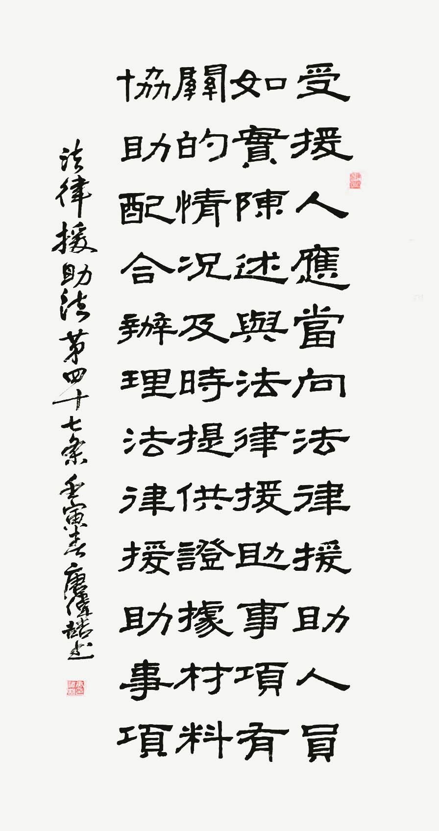 法律援助法第四十七條 受援人應(yīng)當向法律援助人員如實陳述與法律援助事項有關(guān)的情況,及時提供證據(jù)材料,協(xié)助、配合辦理法律援助事項。