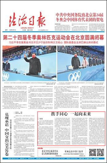 北京冬奧會(huì)為中國發(fā)展提供了新機(jī)遇,也為世界貢獻(xiàn)了更多可能?!耙黄鹣蛭磥怼笔潜本┒瑠W會(huì)的愿景,簡潔凝練的表述中蘊(yùn)含著博大智慧和深厚情懷,發(fā)出了構(gòu)建人類命運(yùn)共同體的中國倡議。各國運(yùn)動(dòng)員在賽場上,呈現(xiàn)給世界的不僅有挑戰(zhàn)自我、突破極限的拼搏精神,還有相互支持、彼此成就的美好友誼。在對手比賽失利后主動(dòng)安慰、成功后真誠擁抱祝?!荒荒恍氖窒噙B、情意相牽的動(dòng)人場景,在瞬間定格成為永恒。北京冬奧會(huì)以全球共通的體育語言和體育精神,積極踐行了“更快、更高、更強(qiáng)——更團(tuán)結(jié)”的奧林匹克格言,生動(dòng)地詮釋著人類命運(yùn)共同體的理念,向全世界傳遞出明確信息:奧林匹克精神是人類團(tuán)結(jié)的燈塔,任何國家、民族、宗教的人民都可以超越分歧,實(shí)現(xiàn)團(tuán)結(jié)與合作。