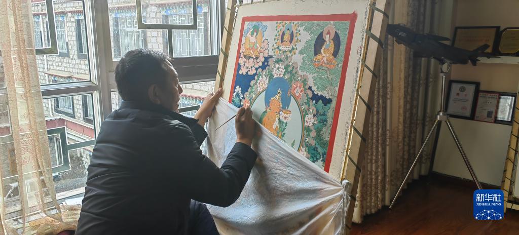 羅布斯達(dá)在工作室繪制唐卡。 新華社記者 范帆 攝