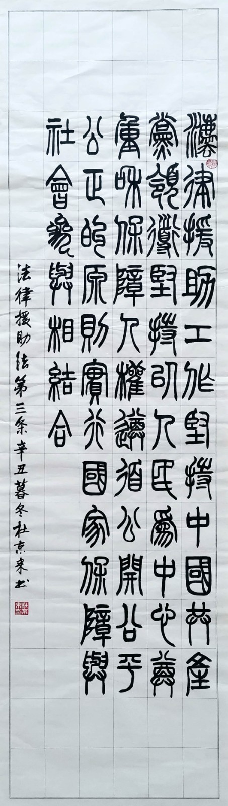 作品入展全國(guó)法治書畫攝影展、“同舟共濟(jì)、攜手抗疫”國(guó)家機(jī)關(guān)干部職工書畫網(wǎng)絡(luò)邀請(qǐng)展等。