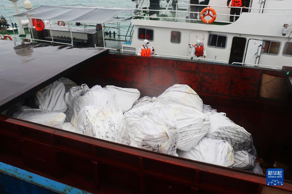 廣東海警局執(zhí)法員清點涉案凍品(3月16日攝)。新華社發(fā)(楊祖昌 攝)