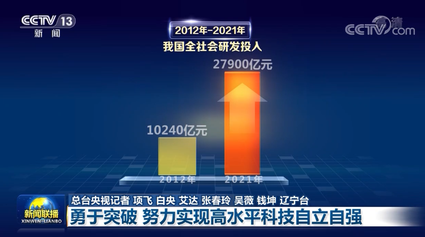 核心技術(shù)自主創(chuàng)新能力的提升也有賴于國(guó)家投入的增加。黨的十八大以來(lái),我國(guó)全社會(huì)研發(fā)投入從2012年10240億元增長(zhǎng)到2021年27900億元,其中基礎(chǔ)研究投入從498億元增長(zhǎng)到超過(guò)1600億元,是十年前的3.4倍。我國(guó)投入運(yùn)行和在建的大科學(xué)裝置從屈指可數(shù)增加到50多個(gè),基礎(chǔ)研究和戰(zhàn)略前沿突破能力大幅提升,為偉大變革、筑夢(mèng)強(qiáng)國(guó)奠定新基。