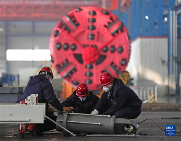 工人在沈陽(yáng)北方重工集團(tuán)有限公司盾構(gòu)機(jī)分廠車間工作(2020年2月10日攝)。 新華社記者 楊青 攝