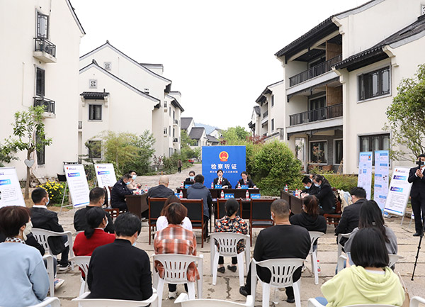 浙江省湖州市安吉縣人民檢察院踐行鄉(xiāng)村微檢察,將公開聽證會開進鄉(xiāng)村,讓法律服務的“煙火氣”延伸到大街小巷。 葉健 攝