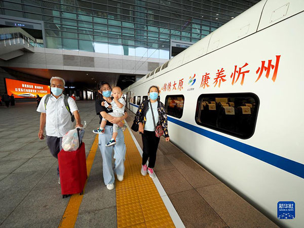 乘客在山西太原南站準(zhǔn)備乘坐D5306次動(dòng)車組列車(2022年7月4日攝)。新華社發(fā)(張炯攝)
