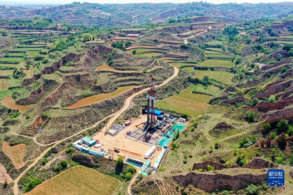 這是在山西省長(zhǎng)治市武鄉(xiāng)縣拍攝的一處煤層氣鉆井現(xiàn)場(chǎng)(無(wú)人機(jī)照片,2021年6月22日攝)。新華社記者 曹陽(yáng) 攝