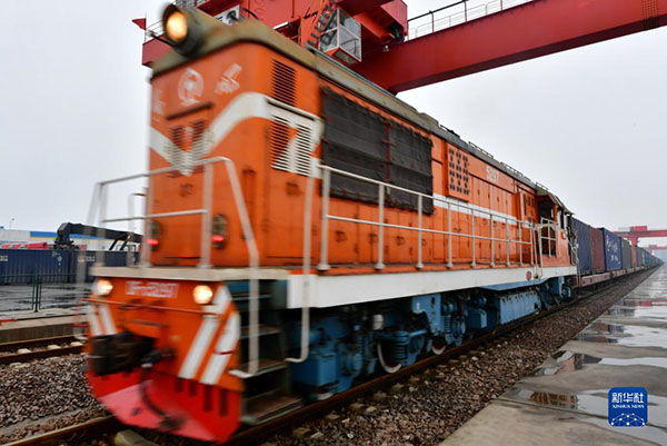一列中亞班列從山西中鼎物流園駛出(2020年2月27日攝)。新華社記者 曹陽(yáng) 攝