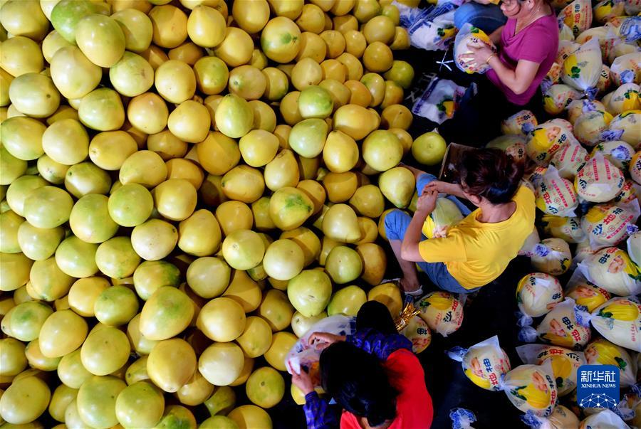 在福建省漳州市平和縣的一家蜜柚加工廠,工人在包裝蜜柚(2020年9月17日攝)。近年來,平和縣出臺鼓勵扶持蜜柚產(chǎn)業(yè)轉(zhuǎn)型提升的一系列措施,走出了一條依靠蜜柚富民強(qiáng)縣的道路。新華社記者 魏培全 攝