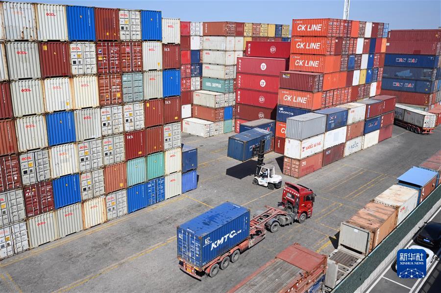 在廈門自貿(mào)片區(qū)現(xiàn)代碼頭,車輛在轉(zhuǎn)運(yùn)集裝箱(2020年11月10日攝)。新華社記者 姜克紅 攝