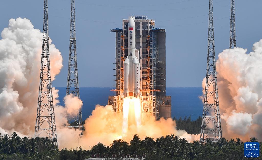 7月24日,搭載問天實驗艙的長征五號B遙三運載火箭在文昌航天發(fā)射場成功發(fā)射。新華社記者 楊冠宇 攝