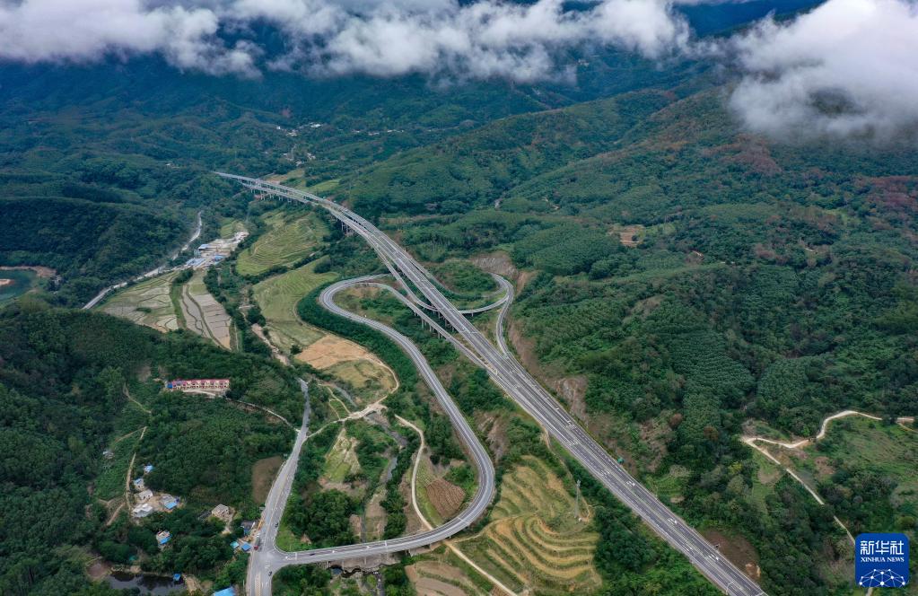 海南海三高速公路一景(2020年12月12日攝,無人機照片)新華社記者 郭程 攝