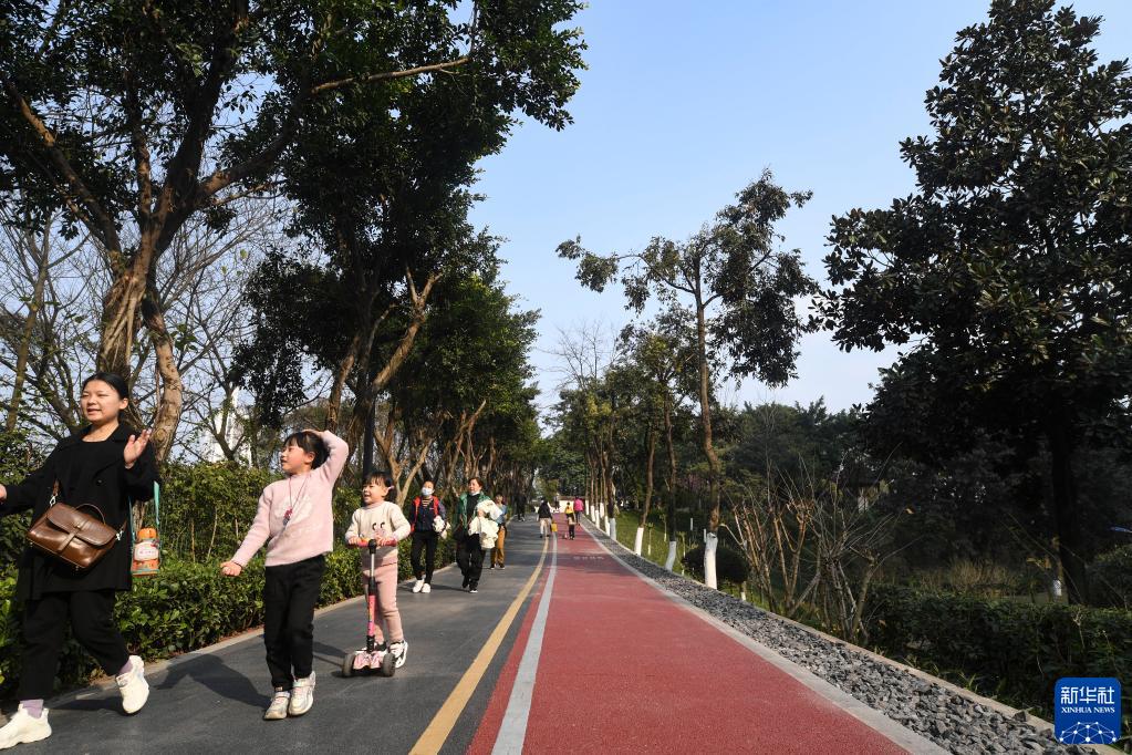 市民和游客在重慶市大渡口區(qū)重鋼崖線山城步道游覽(2022年2月15日攝)。新華社記者 王全超 攝