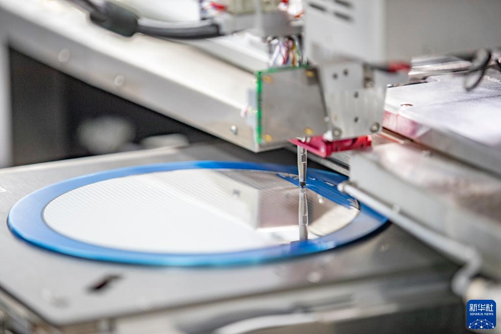 在重慶平創(chuàng)半導(dǎo)體研究院有限責(zé)任公司,工作人員利用設(shè)備對芯片進行貼片作業(yè)(2022年4月15日攝)。新華社記者 黃偉 攝