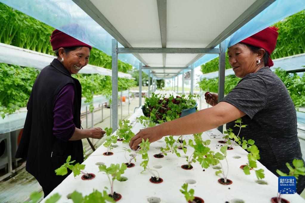 四川省昭覺縣四開鎮(zhèn)好谷村涪昭現(xiàn)代農(nóng)業(yè)產(chǎn)業(yè)園內(nèi),農(nóng)戶在進(jìn)行芹菜苗移栽(2022年6月18日攝)。新華社記者 劉瓊 攝