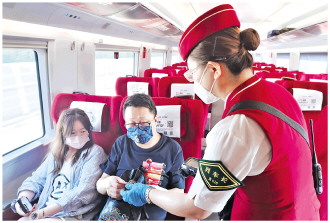 “我們會(huì)為兒童提供兒童讀物,為哺乳期婦女提供私密空間,對(duì)單獨(dú)乘車的老人、盲人以及行動(dòng)不便的旅客進(jìn)行重點(diǎn)服務(wù),介紹車內(nèi)安全注意事項(xiàng),幫助旅客解決實(shí)際困難,指引去衛(wèi)生間,送水送飯,與站臺(tái)值班員辦理交接,方便出站,用實(shí)際行動(dòng)護(hù)送旅客平安出行?!闭f(shuō)起服務(wù)內(nèi)容,盧雅靜滔滔不絕。