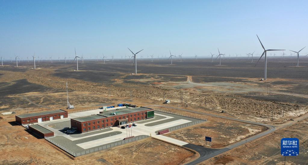 這是2022年4月16日拍攝的甘肅省酒泉市境內(nèi)的風(fēng)電基地(無人機(jī)照片)。新華社記者 陳斌 攝