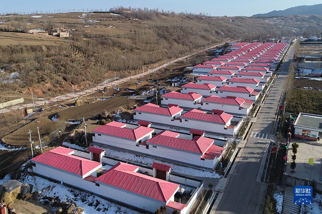 2021年2月6日在甘肅省定西市渭源縣元古堆村拍攝的鄉(xiāng)村道路和易地扶貧搬遷點(diǎn)。新華社記者 馬希平 攝