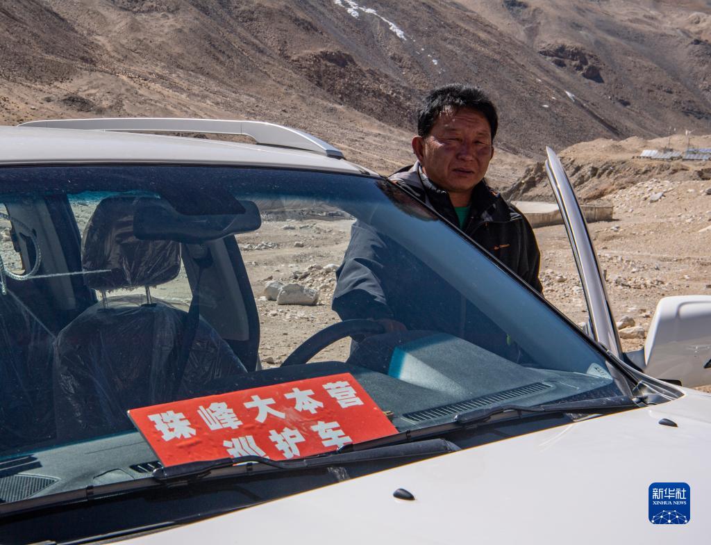 拉巴次仁駕駛巡護車在珠穆朗瑪峰國家級自然保護區(qū)內(nèi)巡邏(2020年5月15日攝)。新華社記者 孫非 攝