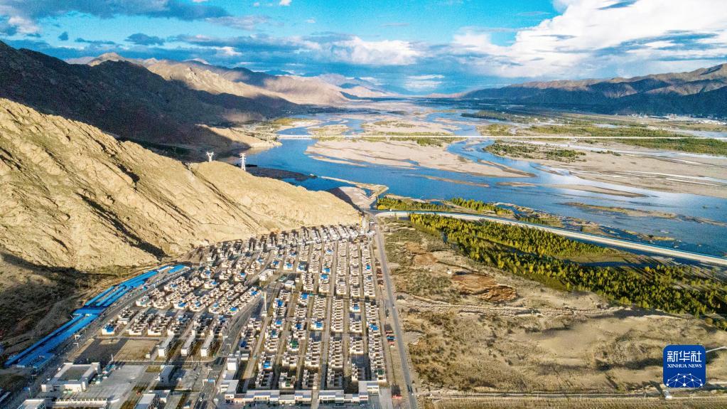 這是位于西藏山南市貢嘎縣的森布日搬遷安置點(2020年9月24日攝,無人機照片)。新華社記者 孫非 攝