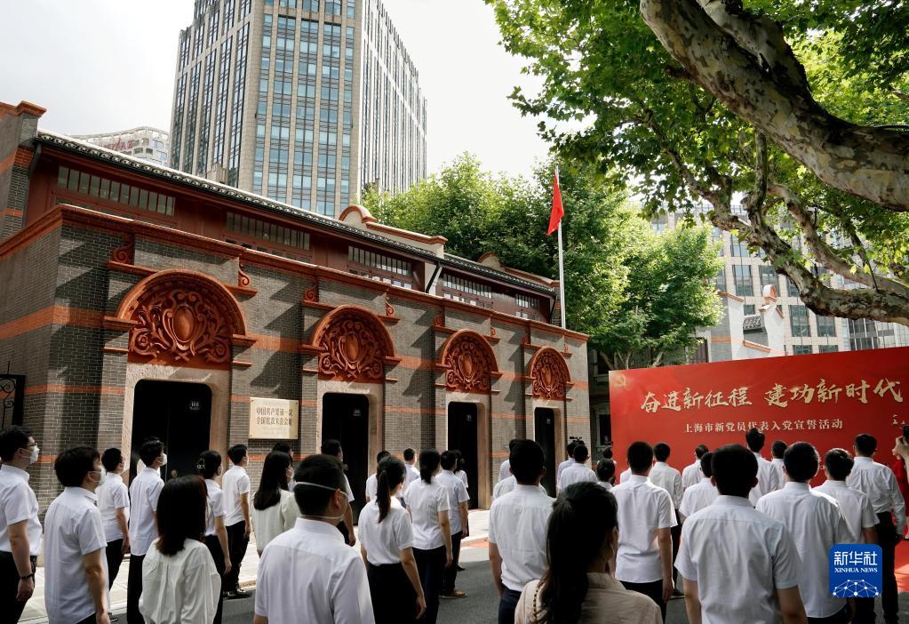 上海市新黨員代表入黨宣誓活動(dòng)在中共一大會(huì)址前舉行(2022年7月1日攝)。新華社記者 劉穎 攝