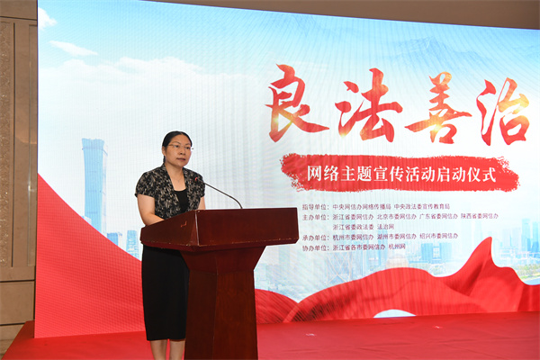 9月6日,由中央網(wǎng)信辦網(wǎng)絡傳播局、中央政法委宣傳教育局指導,法治網(wǎng)及北京、浙江、廣東、陜西網(wǎng)信辦主辦,中國互聯(lián)網(wǎng)發(fā)展基金會中國正能量網(wǎng)絡傳播專項基金提供支持的“良法善治”網(wǎng)絡主題宣傳活動在浙江杭州啟動。圖為活動現(xiàn)場。