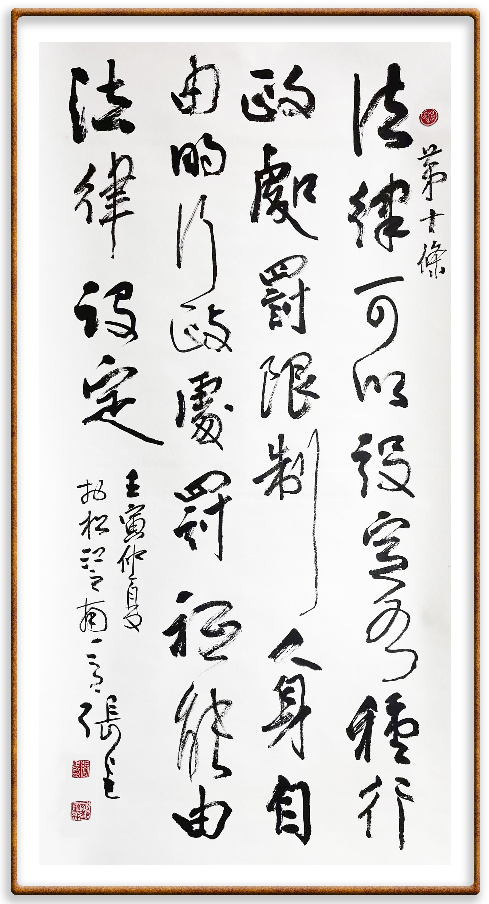 繼《中華人民共和國民法典》《中華人民共和國土地管理法》《中華人民共和國土地管理法實施條例》《中華人民共和國法律援助法》之后,法治日報社聯(lián)合北京市司法局、北京市書法家協(xié)會,將筆端對準(zhǔn)《中華人民共和國憲法》和《中華人民共和國行政處罰法》。